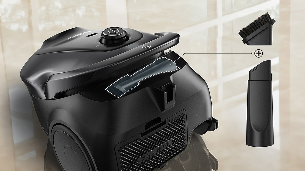 Always have attachments for different surfaces at hand. Store them directly in the vacuum cleaner body so you don't have to search for them when you need them. The package includes a brush or crevice nozzle.