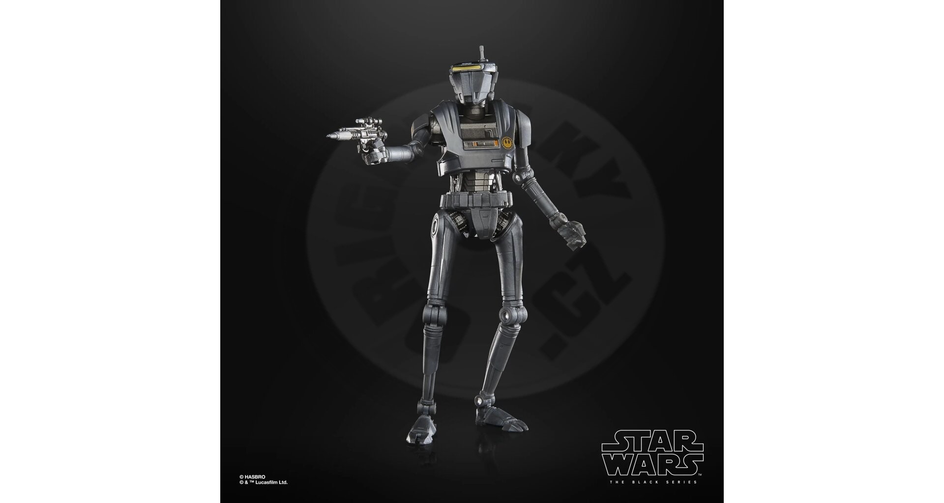 The 6-inch Black Series figure is meticulously crafted to look like the New Republic security droid character from Star Wars: The Mandalorian with premium detailing.